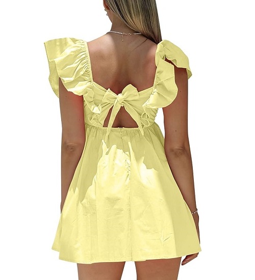 Womens Sexy Deep V Neck Ruffle Sleeve Mini Dress Backless Lace Up Summer Dresses